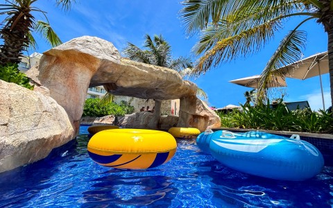 - Lazy river with access to a swim-up bar